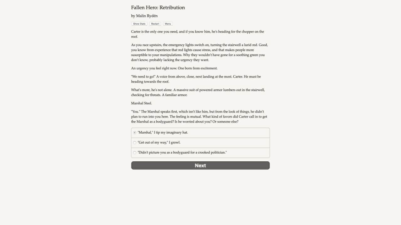 Игра представляет из себя прямое сюжетное продолжение знаменитого проекта Rebirth, где игрокам будет предложен необычный текстовый опыт без какого-либо графического сопровождения. Данная научно-фантастическая история насчитыват внутри себя порядка полтора миллиона слов, формирующих сложнейшую паутину моральных дилемм.