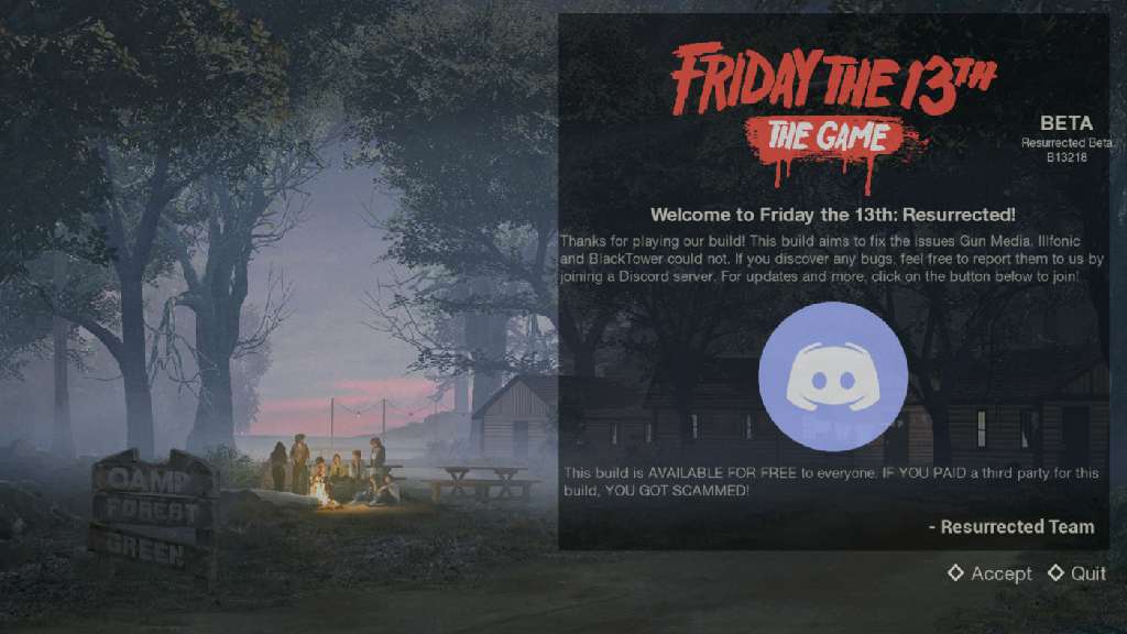 Неофициальный фанатский проект, который создавался энтузиастами, предназначенный для того, чтобы не просто восстановить игру, но и значительно расширить Friday the 13th: The Game после её официальной ликвидации. Основная суть задумки в том, чтобы бесплатно вернуть мультиплеер, который официально закрыли, а также добавить новый контент и режимы.