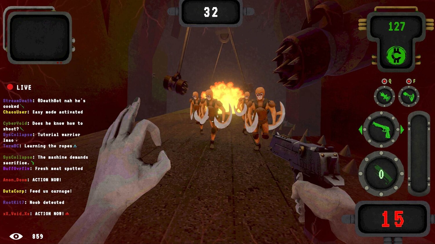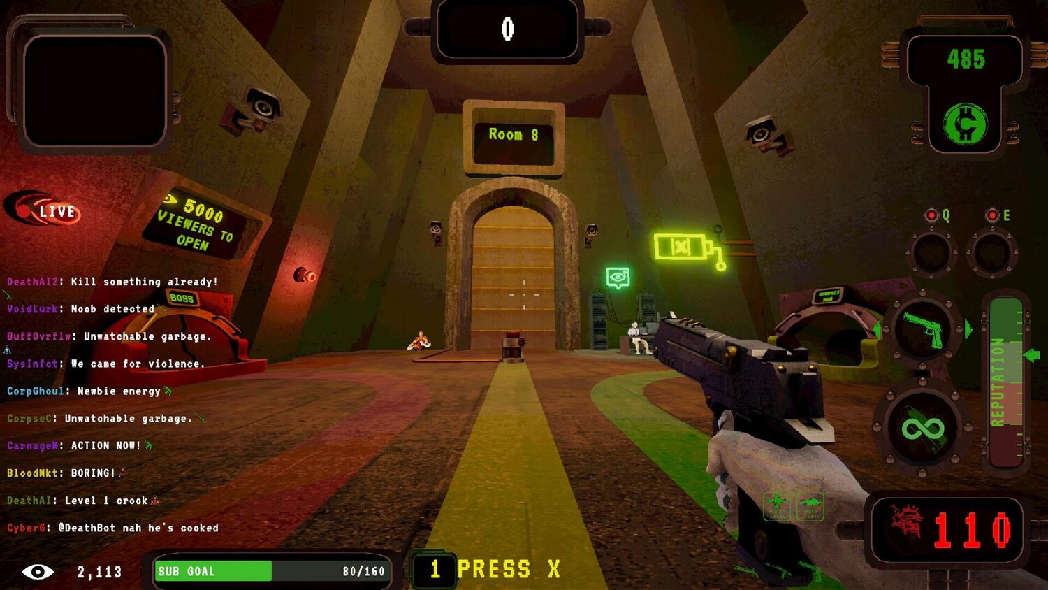 Головокружительный аренный шутер, в котором вы будете принимать участие не по собственной воле, а именно потому, что уже продали себя корпорации. Все камеру включены, эфир стартует, а любое ваше действие будет частью трансляции. Выбраться нельзя — остаётся только продолжать, зная, что твой конец тоже станет частью развлечения для тех, кто смотрит.