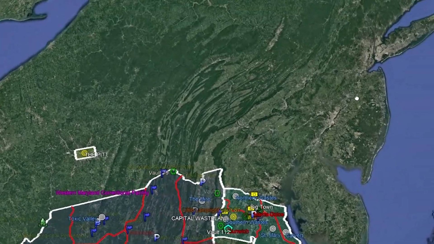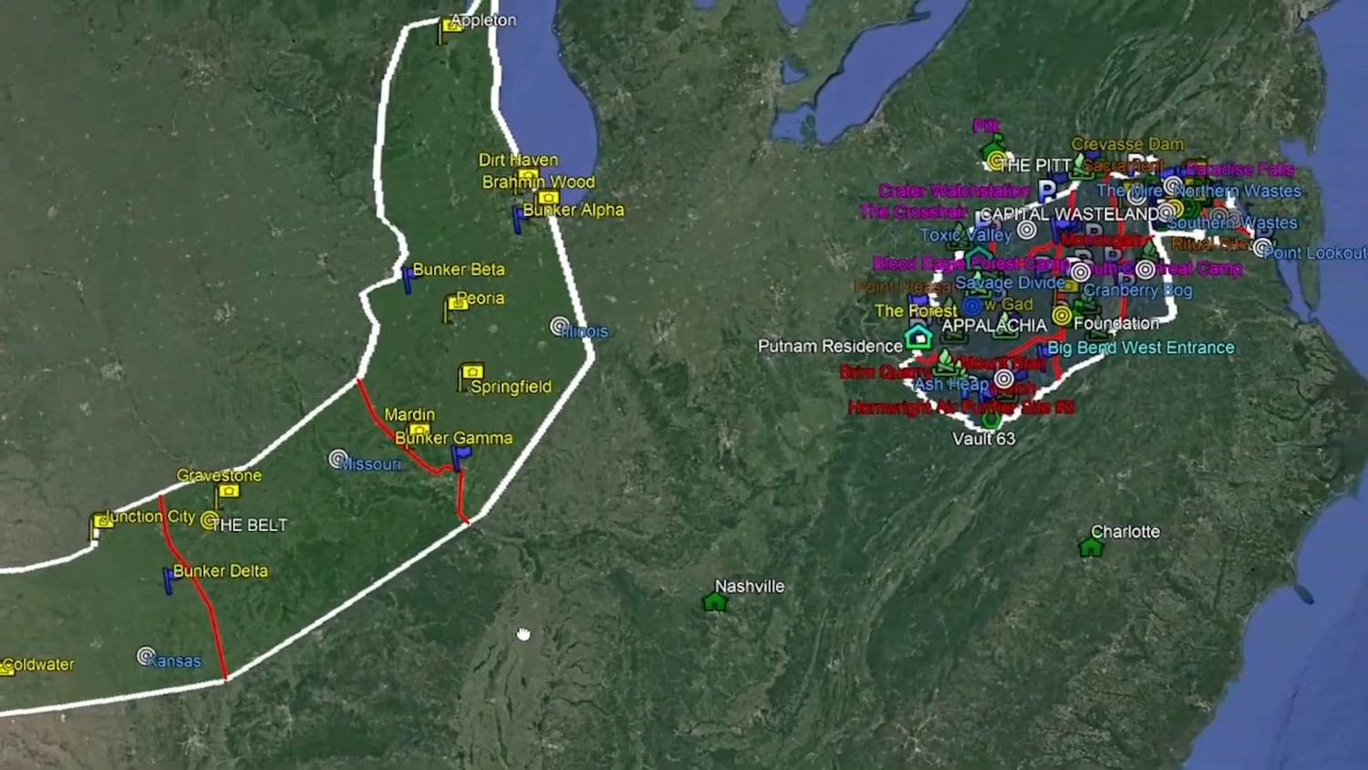 Интерактивная карта Fallout 3 позволяет просматривать локации мира игры. Наведите курсор на значок, чтобы увидеть название места, и используйте кнопки внизу для фильтрации объектов. Можно скрыть все маркеры и отображать только выбранные группы, например, станции метро.