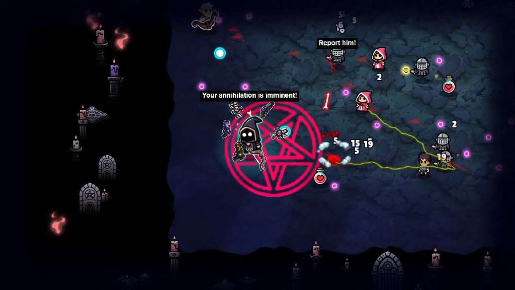 Довольно стильный рогалик с огромными волнами врагов, аддиктивным игровым процессом и очень чёрным юмором. Здесь вы не будете героем, вы будете антагонистом. Вы не будете никого спасать, вы будете устраивать тотальный геноцид ноубов! Ты не играешь — ты караешь. Выбирай своего Босса и загружай его арсенал из атак, аур и заклинаний.
