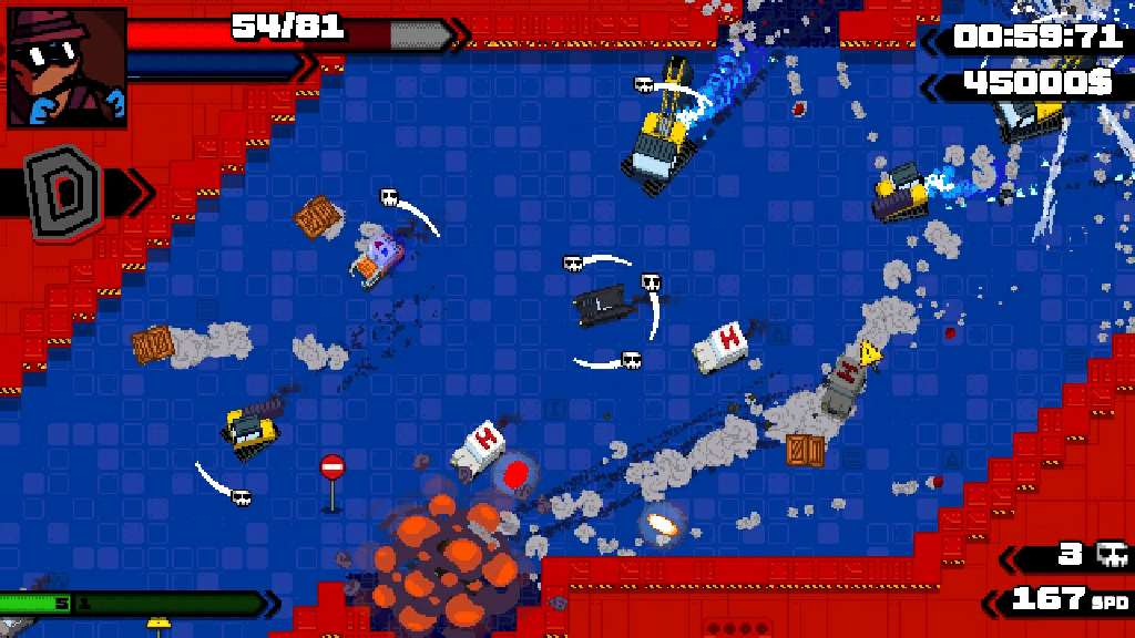 В этом тайтле вы будете управлять различными транспортными средствами заключенных, от спорткаров до погрузчиков, постоянно совершая жесточайшую попытку вырваться на свободу и стать очень богатым. Но для начала нужно избежать тюрьмы, попутно уничтожая преследующих полицейских и разрушаемое окружение.