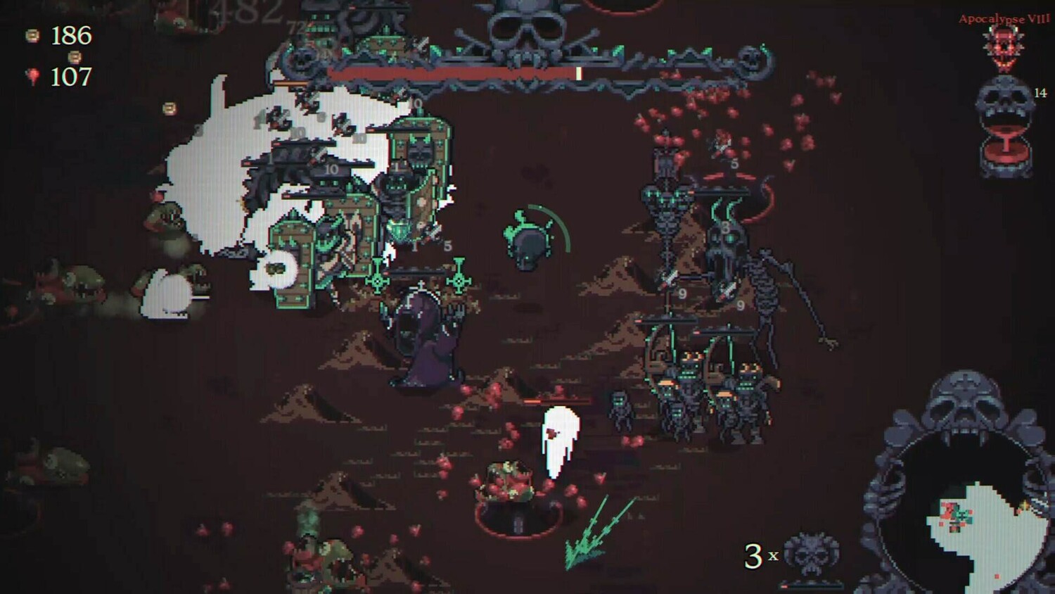 Крайне динамичный автобатлер-дungeon crawler, в котором вам предстоит играть за некого летающего некроманта-черепа. Суть в том, чтобы постараться отыскать очень мощную добычу и постараться создать паранормальные билды. Призывайте орду скелетов в битве кости против плоти!
