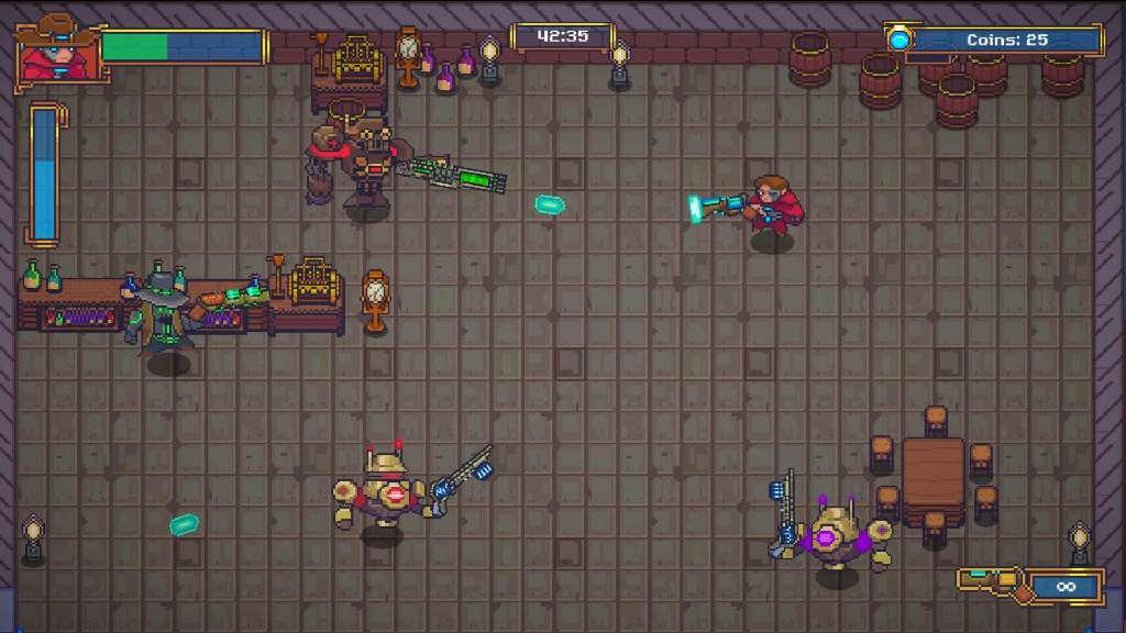 Стремительный экшен выполненный в антураже техно-вестерна, в котором практически каждое движение будет определять исход всего поединка. Вы оказываетесь в мире, в котором паровые механизмы слились с кибернетикой, а вы возьмете на себя роль до зубов вооруженного ковбоя, готового очистить земли от банд, играющих по своим жестоким правилам.