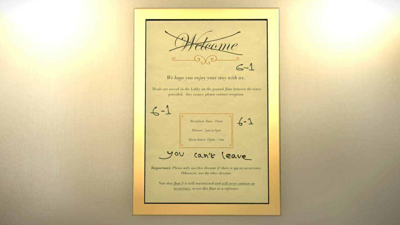 Вас ждёт полноценное сюрреалистичное испытание на внимательность, что будет требовать от вас постоянного тщательного анализа всего окружающего пространства. Главный процесс базирован на поиске визуальных несоответствий внутри пугающе одинаковых коридоров. Вас ждёт незабываемое и очень странное путешествие.