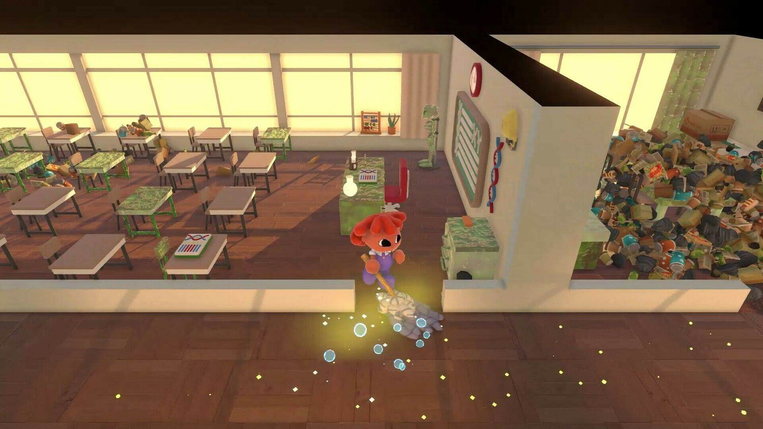 Беспорядок нипочем — грязь и мусор приберем! Поспешите собрать весь свой инвентарь и сразу же займитесь наведением чистоты и уюта. С таким мощным помощником, как у вас, любая уборка будет исключительно вам в радость!