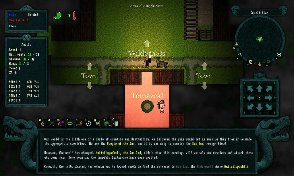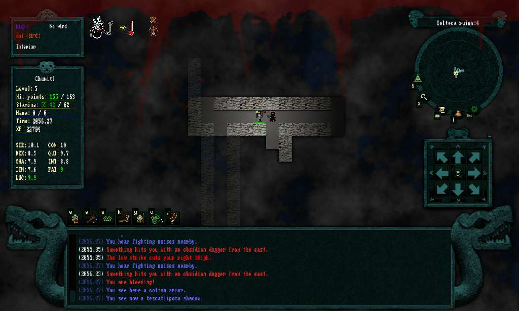 Новый пошаговый рогалик, события которого происходят в альтернативной истории Америк, полностью основанной на мифах мешиков. События повествования разворачиваются в тот момент, когда бог Уицилопочтли не взошел, после чего мир навсегда погрузился в сумерки. Вас ждёт огромный мир по миру без солнца.