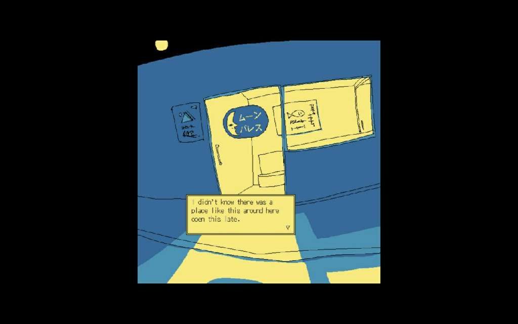 Весь игровой процесс данного тайтла построен на том, что вы будете посещать вечное заведение Moon Palace, а общаться вы будете при помощи point-and-click интерфейса используя диалоги с вариантами ответов. Все принятые вами решения будут напрямую формировать всё повествование, ведя историю к одной из двух концовок.