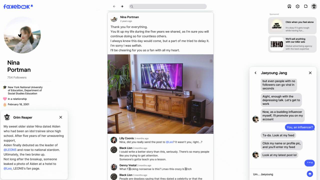 Новый детективный приключенческий point-and-click, события которого происходят в мире необычной виртуальной социальной сети. Целые миллионы людей делятся здесь своими жизнями, при этом постоянно скрывая за яркими профилями семейные тайны, корпоративные заговоры и секреты знаменитостей.