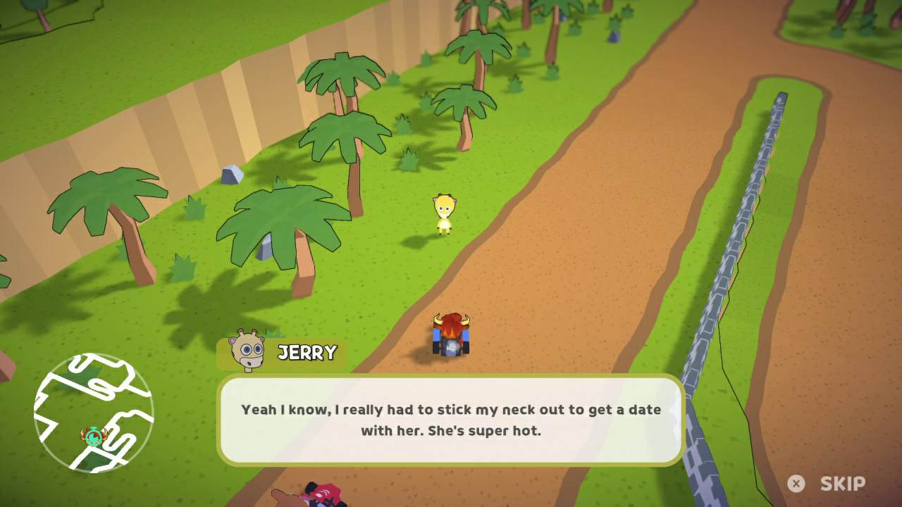 Игра просто переполнена сумасшедшим драйвом в полностью открытом мире, который населен 32 видами фауны и предлагающий стать частью абсурдной гоночной истории. Вы будете старательно маневрировать на трассах, что будет требовать от вас отточенных навыков дрифта и грамотного использования специфического арсенала.