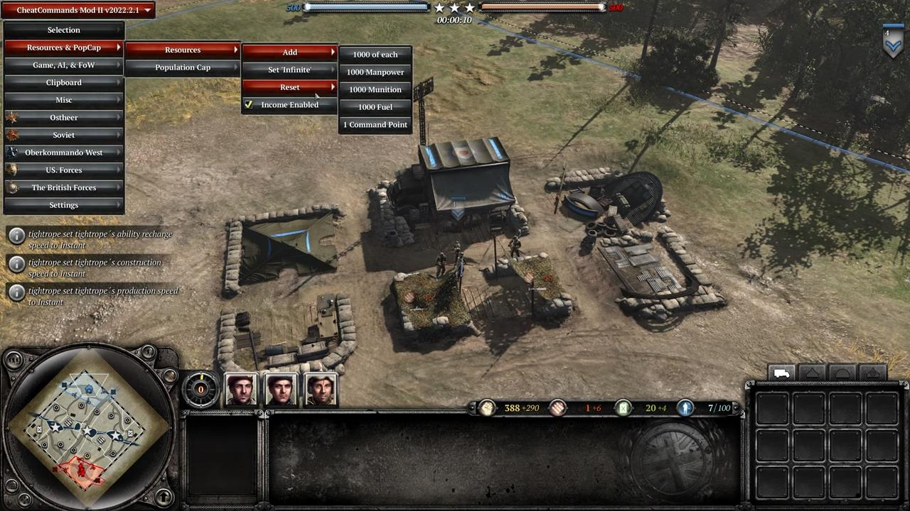 Один из самых известных чит-модов для Company of Heroes, позволяющий создавать неограниченное количество любых юнитов, техники и построек. Идеально подходит для экспериментов, масштабных сражений и весёлого хаоса без ограничений ресурсов.