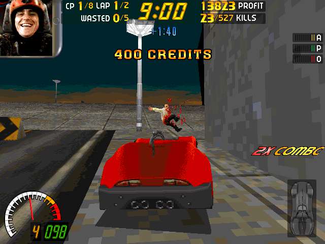 Именно эту версию можно назвать отлично доработанным до ума кармагеддоном. На обычных милицейских тачках огромными буквами написано ГАИ, и с ними вам предстоит иметь дело. Вам стоит не забывать про сохранения, а самостоятельно не покупать запчасти для машины, ибо тогда игра будет вылетать. После каждого тура нажимать ENTER. машина потом сама апргрейдится.
