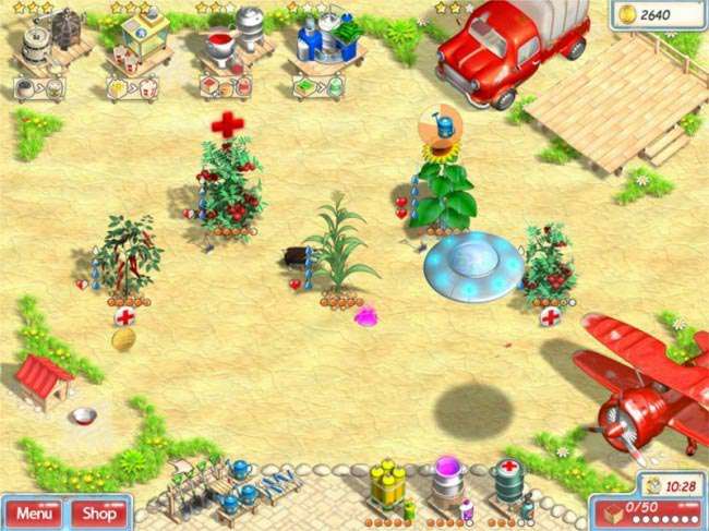 Это очень красочная игра, в которой уклон сделан на сельское хозяйство. Здесь вам предстоит держать под собственным управлением ферму. Стоит иметь в виду. что у вас будет много грядок и каждая из них требует своего индивидуального подхода: кукурузу необходимо чаще окапывать, острому перцу подрезать лишние побеги, помидор часто болеет, а огурцы нужно как можно чаще поливать.