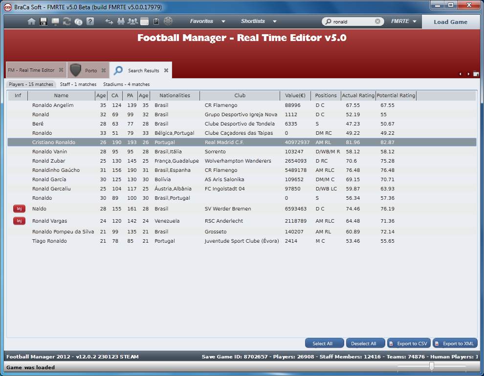 Football Manager Real Time Editor — инструмент для редактирования и анализа данных в Football Manager 2011. Программа позволяет изменять параметры игроков, личную информацию, данные клубов и финансовые показатели. Также она может использоваться как скаут-утилита, показывая скрытые характеристики футболистов, их текущий и потенциальный уровень, стоимость и другие параметры. Главная особенность инструмента — возможность редактирования игровых данных в реальном времени без перезапуска игры.