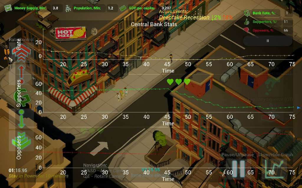 Вам нужно будет вооружиться самым грозным оружием, которое только известно человечеству: ключевая процентная ставка. Являясь главой центрального банка, вы будете регулярно понижать или повышать ставку, таким образом отбирая у людей надежду на покупку собственного жилья. Снижайте её и деньги в стране потеряют цену...