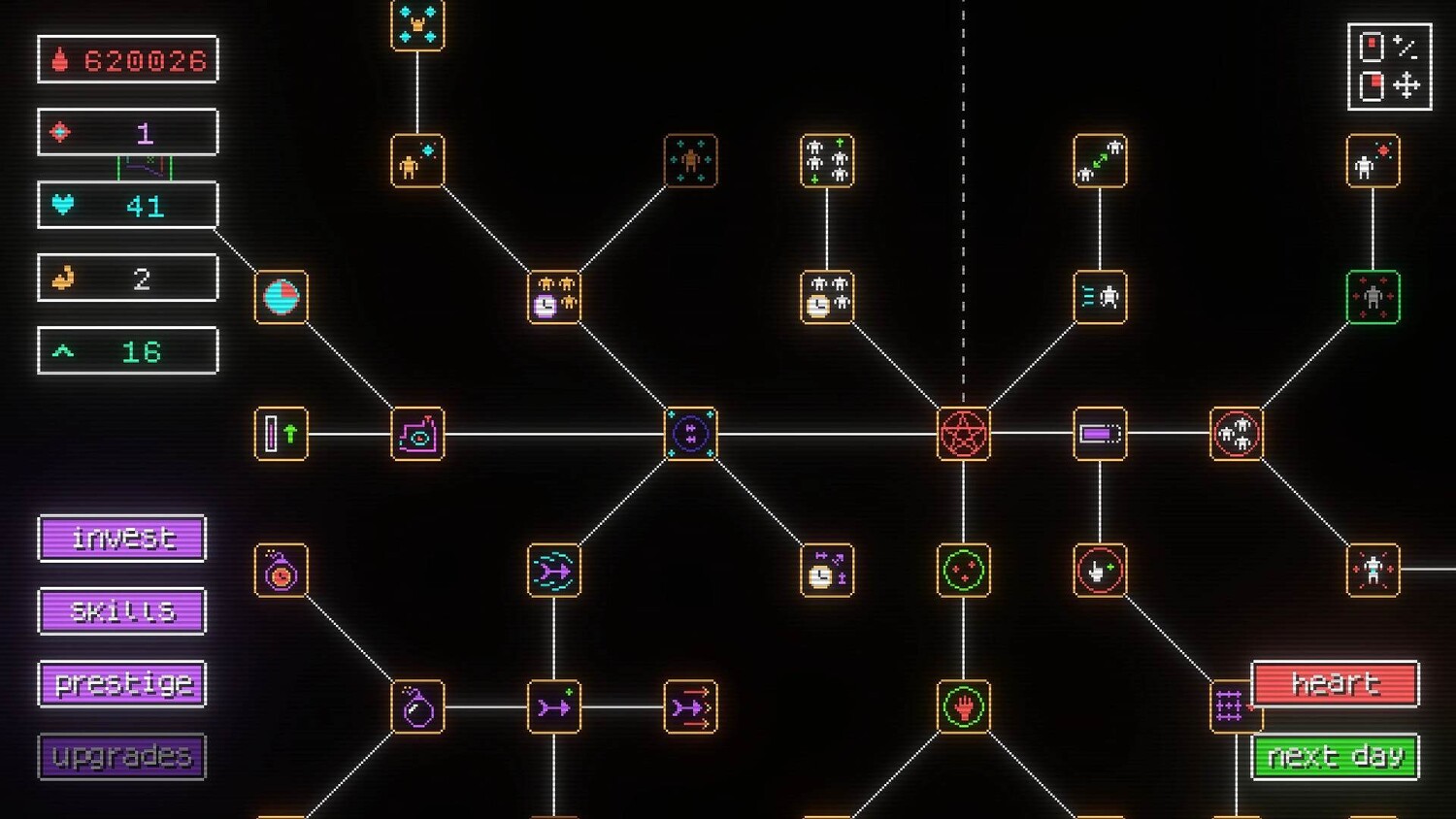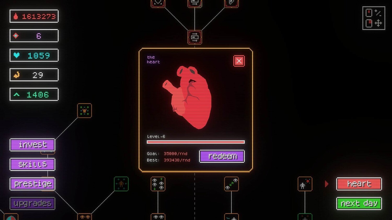 Интересная стратегическая игра с циклическим развитием, в которой весь игровой процесс был построен на накоплении ресурсов, выборе улучшений и постепенном раскрытии новых возможностей через перезапуски. Главный акцент поставлен на полноценную оптимизацию действий и максимально эффективные комбинации для ускорения прогресса.