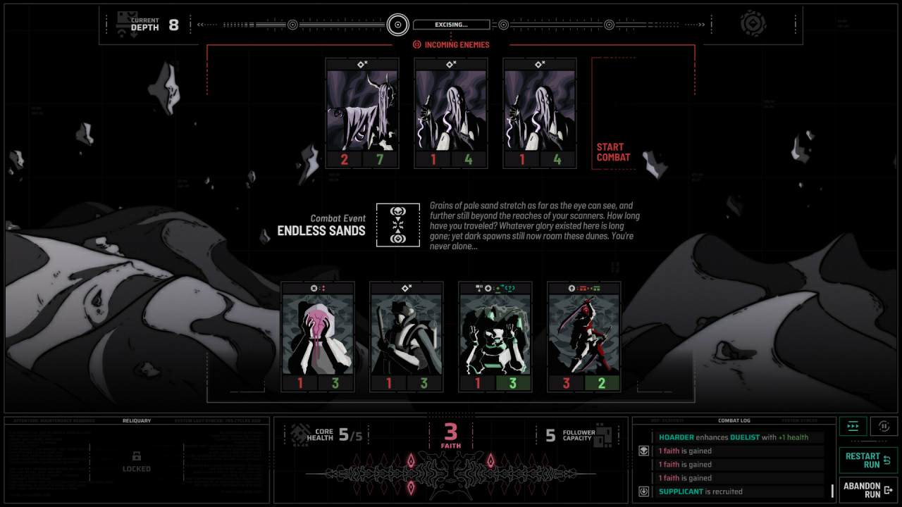 Игра представляет из себя очень мрачный научно-фантастический роуглайк-автобаттлер, в котором вашей основной задачей будет сбор отряда состоящего из уникальных последователей для противостояния древнему злу. Любое прохождение будет отправлять вас в самую глубь угасающего мира, предлагая череду интенсивных боевых столкновений и возможностей для стратегического выбора.