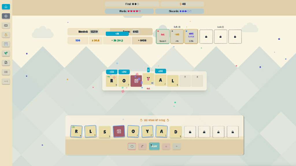 Игра прекрасным образом объединяет в себе механики составления слов со структурой roguelike, где вы будете начинать каждую новую попытку вместе с набором странных буквенных плиток, найденных в мешке. Основной игровой процесс состоит в том, чтобы располагать эти символы в комбинации для получения очков.