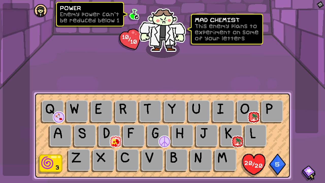 Новый стратегический рогалик, вся боевая система которого полностью построена на наборе текста. Любое ваше столкновение с противником будет происходить при помощи клавиатуры, ибо только слова будут служить вашим оружием. Основой геймплея выступает механика проклятых букв, где особые чары, именуемые Магией.